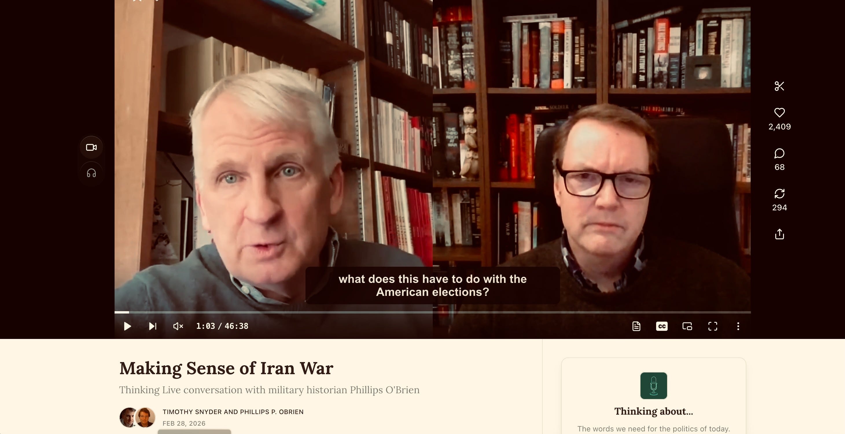 Timothy Snyder, famed political science and scholar of authoritarian regimes, sits down with military historian Phillips O'Brien for a rigorous conversation analyzing what's behind the attack on Iran