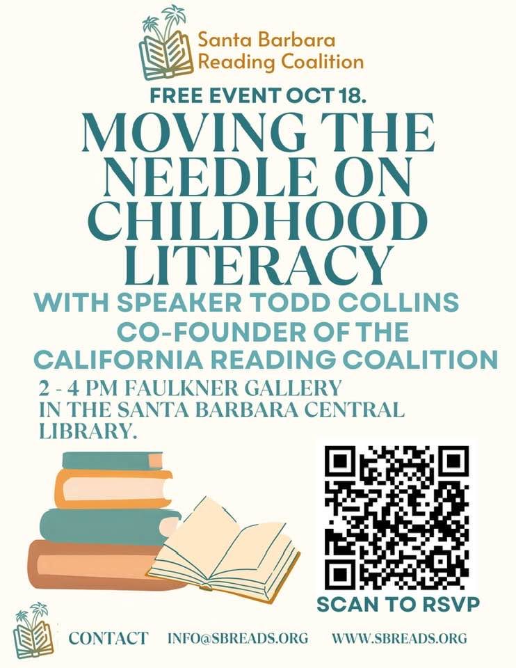 The coalition produces studies and organizes the annual virtual California Reading Summit. This year’s summit, scheduled for October 30, is titled, “Moving the Needle on Early Literacy,” and features notables including advocate Kareem Weaver and researcher Maryanne Wolf—both of whom have spoken about literacy in Santa Barbara. You can register for the virtual event here. https://www.careads.org/summit