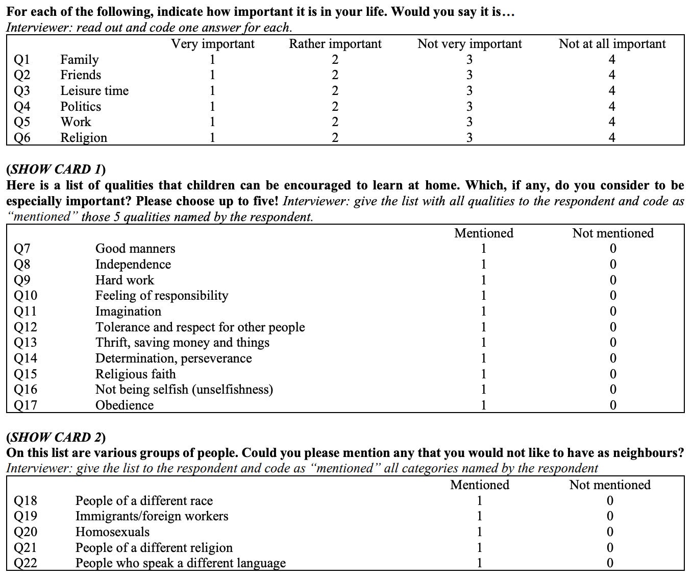 Let me give you some context. The World Values Survey is a battery of questions designed to get at people’s social outlook. Do they trust institutions? Do they tolerate corruption? How central is politics to their identity?